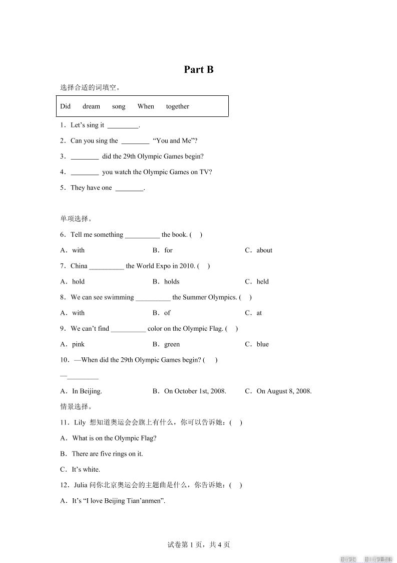 闽教版英语六年级上册Unit1PartB练习卷好创网-官方账号3个月前更新关注私信84533156闽教版英语六年级上册Unit1PartB练习卷此内容为付费阅读,请付费后查看云币3.9VIP会员免费立即购买您当前未登录!建议登陆后购买,可保存购买订单付费阅读已售 308 ——预览已结束,还剩5页未读——开通会员后可免费下载高清完整文档 课程下载: 此处内容已隐藏,请付费后查看 ------本页内容已结束,喜欢请分享------感谢您的来访,获取更多精彩文章请收藏本站。 © 版权声明1、本内容转载于网络,版权归原作者所有! 2、本站仅提供信息存储空间服务,不拥有所有权,不承担相关法律责任。 3、本内容若侵犯到你的版权利益,请联系我们,会尽快给予删除处理! 4、本站全资源仅供测试和学习,请勿用于非法操作,一切后果与本站无关。 5、如遇到充值付费环节课程或软件 请马上删除退出 涉及自身权益/利益 需要投资的一律不要相信,访客发现请向客服举报。 6、本教程仅供揭秘 请勿用于非法违规操作 否则和作者 官网 无关THE END六年级 喜欢就支持一下吧点赞3156赞赏 分享QQ空间微博QQ好友海报分享复制链接收藏