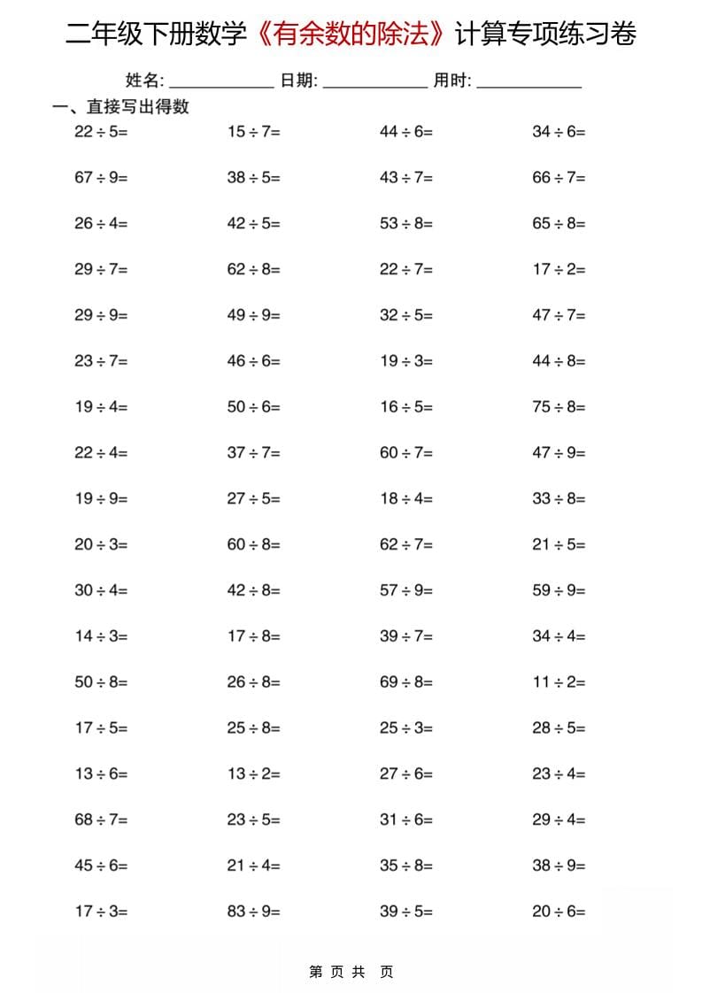 二年级下数学《有余数的除法》计算专项练习卷好创网-官方账号28天前更新关注私信91643432二年级下数学《有余数的除法》计算专项练习卷此内容为付费阅读,请付费后查看云币3.9VIP会员免费立即购买您当前未登录!建议登陆后购买,可保存购买订单付费阅读已售 337 ——预览已结束,还剩28页未读——您已获得此文档下载权限,请点击底部下载完整文档 课程下载: 此处内容已隐藏,请付费后查看 ------本页内容已结束,喜欢请分享------感谢您的来访,获取更多精彩文章请收藏本站。 © 版权声明1、本内容转载于网络,版权归原作者所有! 2、本站仅提供信息存储空间服务,不拥有所有权,不承担相关法律责任。 3、本内容若侵犯到你的版权利益,请联系我们,会尽快给予删除处理! 4、本站全资源仅供测试和学习,请勿用于非法操作,一切后果与本站无关。 5、如遇到充值付费环节课程或软件 请马上删除退出 涉及自身权益/利益 需要投资的一律不要相信,访客发现请向客服举报。 6、本教程仅供揭秘 请勿用于非法违规操作 否则和作者 官网 无关THE END二年级 喜欢就支持一下吧点赞3432赞赏 分享QQ空间微博QQ好友海报分享复制链接收藏